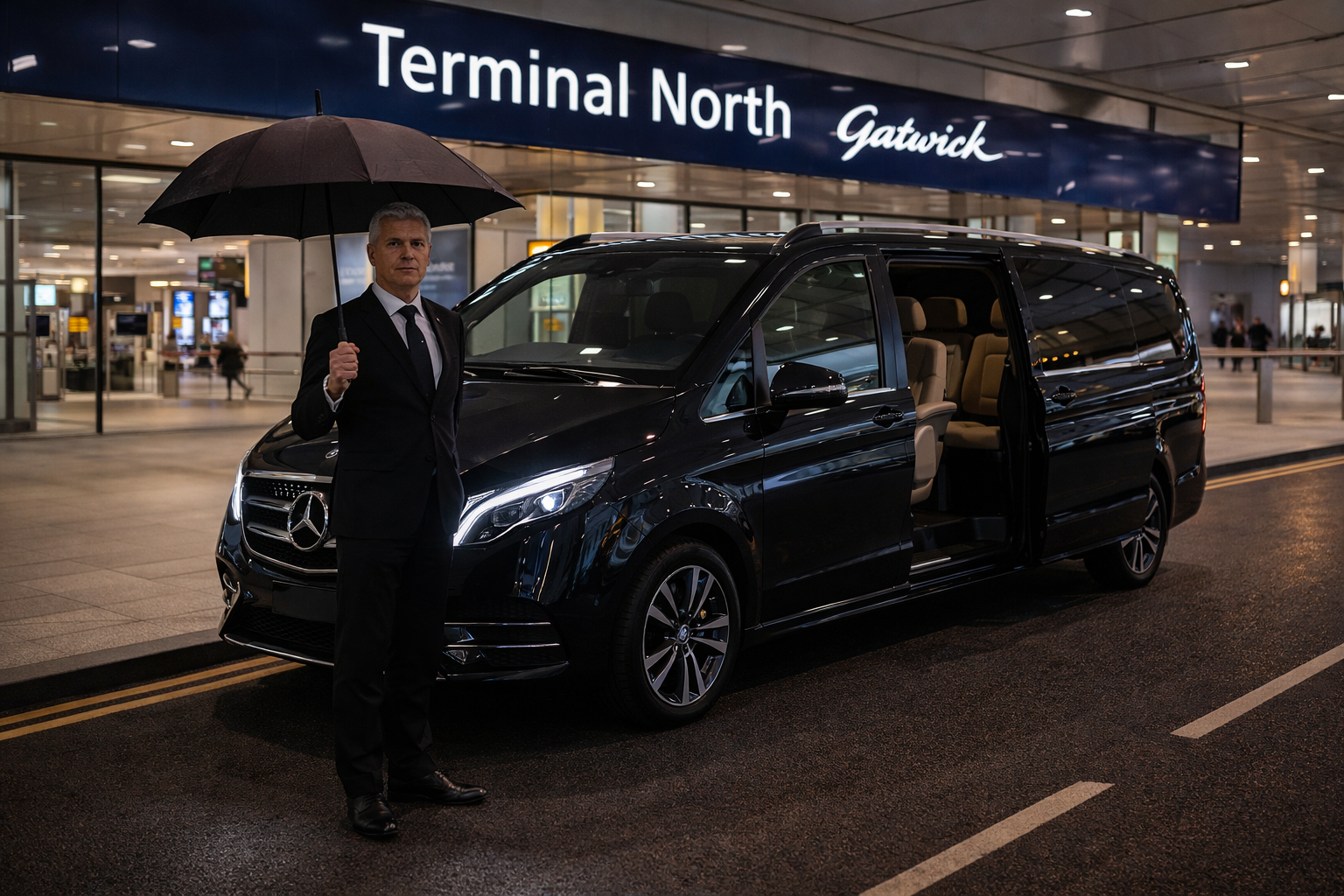 Executive transfers to and from Gatwick Airport with fixed pricing.