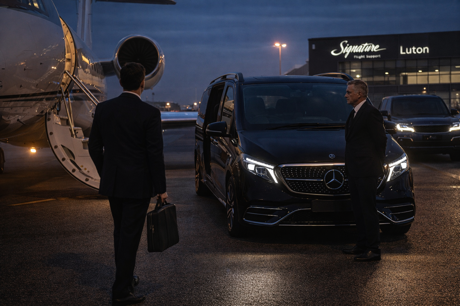 Discreet chauffeur service for private aviation, offering direct access and seamless transfers for high-profile clients.